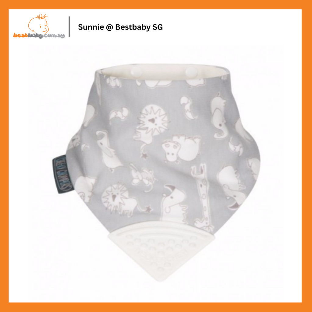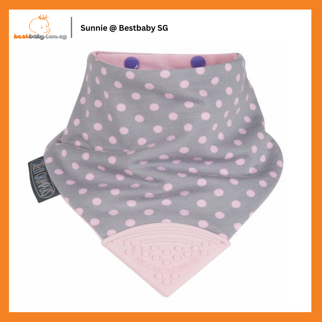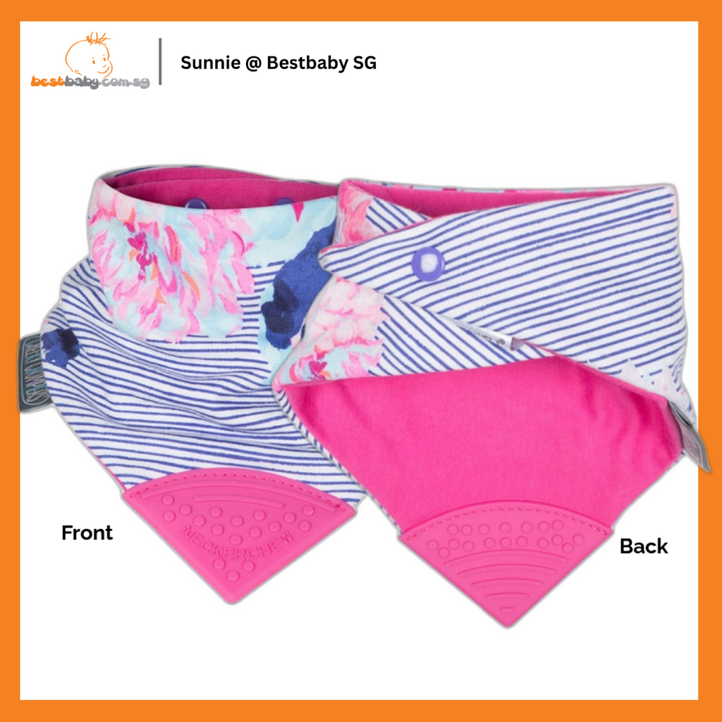 Cheeky Chompers Neckerchew Baby Bib is the World's first chewy dribble bib for teething tots. Bib made of super-soft jersey cotton with an absorbent middle layer to lock away moisture. Teether made from silicone that will never flake or peel. Made in the UK by two Momtrepeneurs. 100% tested, BPA & phthalates free. Suitable from 2 months.
